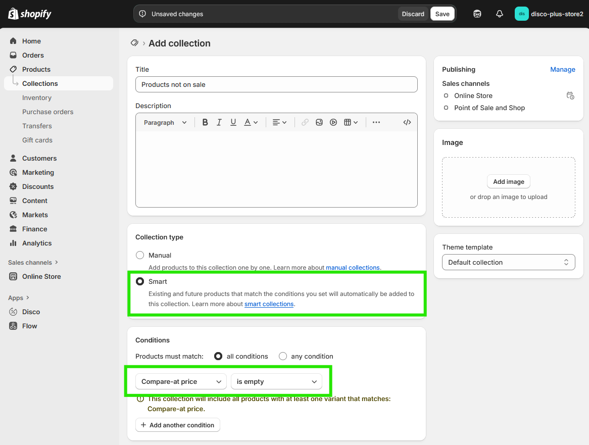 Step 1: Create an Automated Collection for Non-Discounted Products